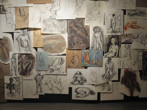 There are several South Texas College locations contributing to the local art scene. We stopped at the one in McAllen to see the “Au Naturale” show which was lobbying for permission to have live, nude, models in their classes. It seemed like a no-brainer to me … however, there is a conservative atmosphere here and a distinct attitude (disapproval) toward the nude body … despite this, artists here got together and put on a show featuring the undraped body. Congratulations on the concept! … and here is a wall of drawings.