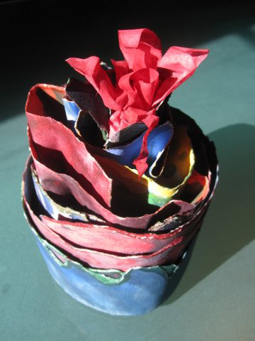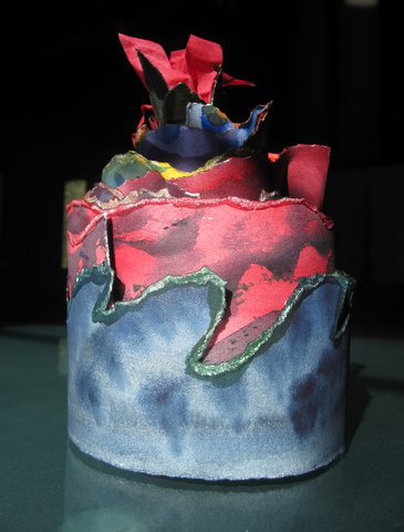 As the Election year rushes toward its conclusion more upheavals occur in our society and in the world. My previous work was a painting, or more accurately, 17 small canvases ascending in a wider and wider pattern. The sculpture seen here shows layers and layers of color pushing up to a final red outpouring of lava, sentiment, and violent emotions of the body politic.
