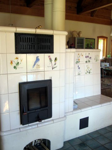 The word “kachel” (pronounced cockle) relates to “stove tile”, which in material and form is different from ordinary tiles. The word “ofen” is equivalent to oven or stove. So it is a heated, ceramic tile wood-burning stove which gives radiant heat.