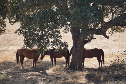 On a 93 degree-at-noon day the golden hills rest in silence and so do the horses.