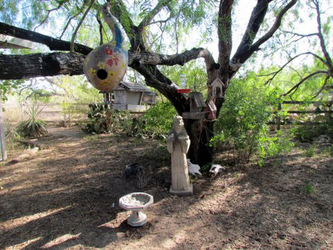 We drive and drive and finally arrive at the park and look in disbelief at a sign on the gate blocking our way. It says “CLOSED – open Wed thru Sat” and today is Tuesday. We can see the visitor Center ahead of us … so we gingerly unhook the gate and drive in. Ambling over to the hedges we see many plain brown butterflies sitting there with their wings closed. This is disappointing as we wanted to see a BIG Iridescent BLUE butterfly, and then we hear shouts from Tom and D.L.